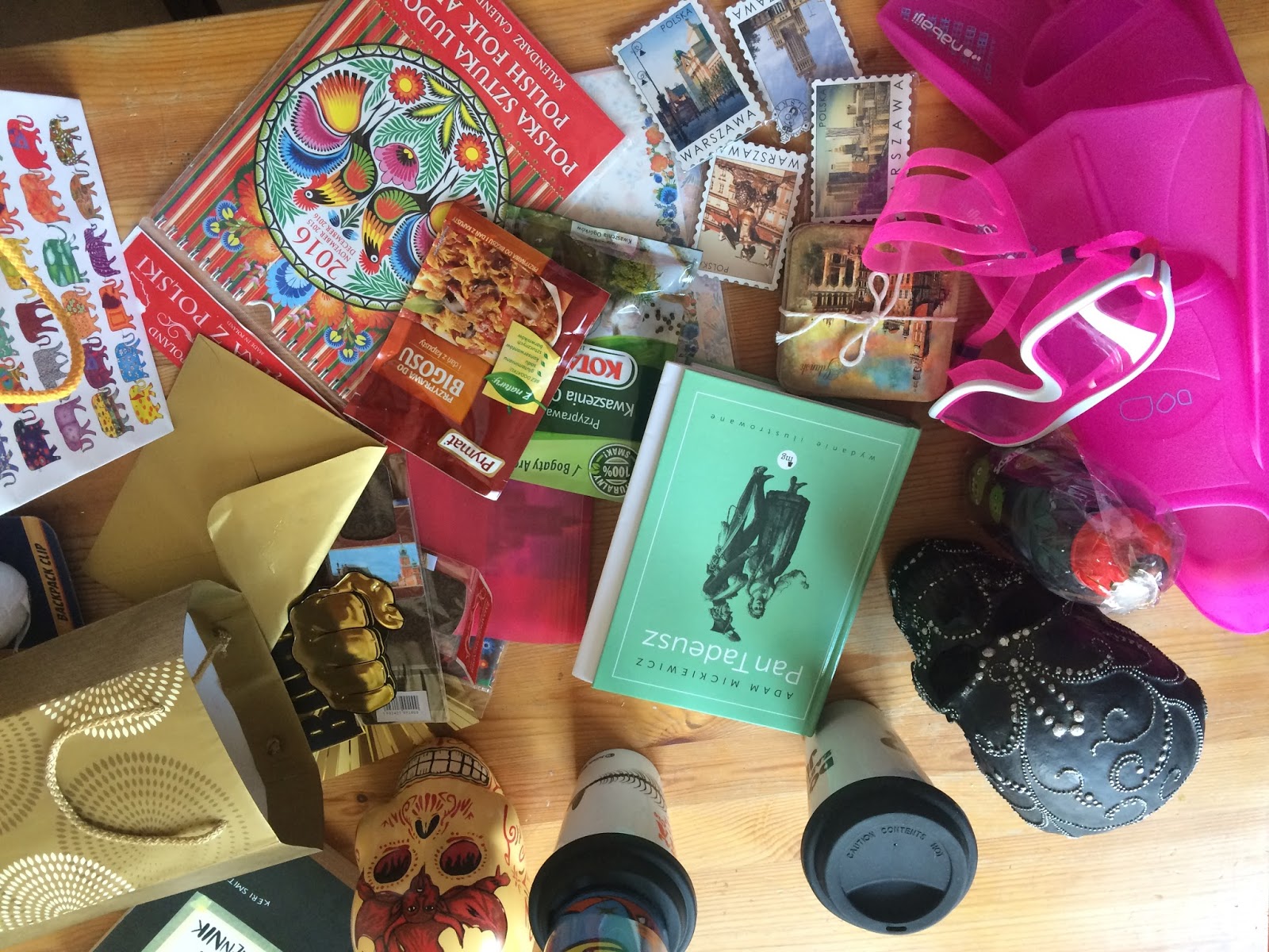 Nadszedł czas wielu pożegnań, które chyba zajęły nam więcej czasu niż pakowanie walizek, trwałam w nieustającym stuporze, nie do końca zdając sobie sprawę z tego, co się wokół mnie dzieje. Zostaliśmy wyposażeni w artefakty przydatne w tropikach (płetwy!), jak i zestaw gadżetów rodzimych, abyśmy nie zapomnieli ojczyzny przez ten rok.