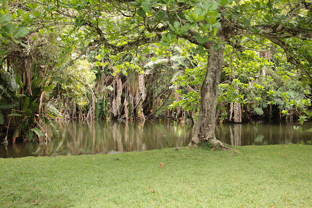 Niebo się przetarło, więc pojechaliśmy zobaczyć ogród botaniczny w Pamplemousse, gdzie można obejrzeć kilkadziesiąt gatunków palm, lotosy i ogromne lilie wodne, których dopiero zabierają się do kwitnienia, więc spodziewam się, że to nie ostatnia wizyta tutaj. Mowgli jak zawsze znalazł kawał bambusa i przeszczęśliwy biegał po krzakach, ale upał go zmordował, że zasnąlpotem w locie, zanim zdążyliśmy pytać, co jemy na kolację.