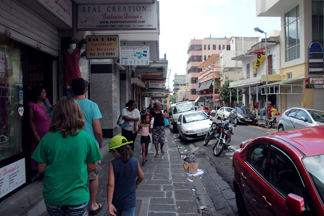 Na całym Mauritiusie  mieszka ok 1,3 mln ludzi. To mniej, niż w samej Warszawie. Skoro o stolicach mowa, pojechaliśmy wczoraj do Port Louis. Właściwie, jeśli nie dojeżdżasz do pracy, to nie masz specjalnie powodu, by odwiedzać to miasto. Zdążyłam przywyknąć do mieszkania na wsi, początkowo czułam się napastowana zgiełkiem, hałasem, korkami. Wąskie, jednokierunkowe uliczki, zapyziałe, niewykończone domy (na Mau, podobnie jak w Egipcie, przez długi czas można było nie płacić podatków od nieruchomości, jeśli nieruchomość nie była ukończona. Niedawno przepisy zmienili, więc może i krajobraz na tym zyska). Co jest fajne, to skondensowana wielokulturowość. Mijasz ulicę chinatown, dzielnicy hinduskiej czy arabskiej. Zmienia się język na szyldach i stroje.
